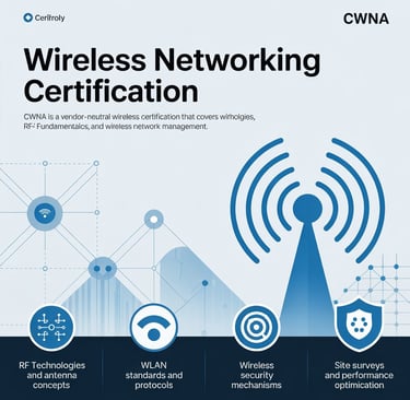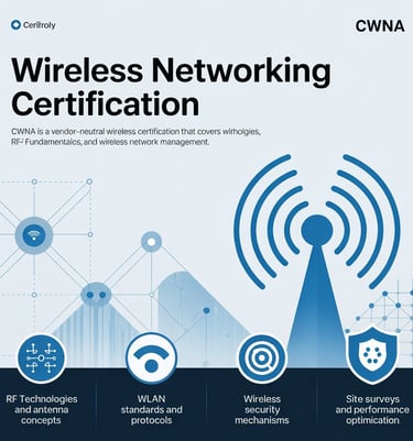 CWNA is a vendor-neutral wireless certification that covers Wi-Fi technologies, RF fundamentals, and wireless network management.